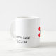 Relive o-chem (or currently live it) with a LabKitty amino acid mug set! Each mug contains one of the 20 amino acids, rendered in loving two-dimensional detail. Relative molecule sizes and bond angles as best I could suss from my build-a-molecule kit results. Single, double, and triple bonds are not distinguished -- you'll just have to count what's stuck to what. And, of course, you get the classic build-a-molecule kit colour scheme: carbons in black, oxygens in red, nitrogens in baby blue, sulphurs in yellow and hydrogens in white. On the flip side is the amino acid name and the chemical formula of the side chain. This one is glutamic acid. Get valuable chemistry review every time you slurf! Customisable.