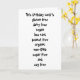 This card is great fun and good quality. I loved the humour inside and on the back. There is the opportunity to change the orientation of this card from landscape to portrait, which I did. It is relatively straightforward to amend the typeface to fit the new orientation. It was well packaged with no plastic. The printing on this card is excellent.