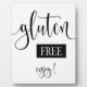 Clearly mark your allergy-friendly options with this elegant "Gluten Free" tabletop plaque, complete with a matching easel for easy display. Perfect for weddings, parties, or catered events, this sign ensures guests can confidently identify gluten-free selections. Designed with a clean, modern aesthetic, it seamlessly complements any décor style—from rustic to refined. The compact size and included easel make it easy to place on buffet tables, dessert stations, or charcuterie boards. A thoughtful and practical addition to your event setup, this plaque combines clarity with class for a polished presentation.