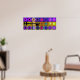 Pour cela, je propose un cadre (et même plusieurs cadres superposés et légèrement transparents) pour créer une composition unique et originale. Ces cadres sont au nombre de 24 pour les 24 heures de la journée humaine.Ces cadres sont de formes géométriques: cercle, carré et octogone. Les cercles se déclinent en dégradé dans les tons de bleu et de violet, les carrés dans les tons jaunes orangés et les octogones en vert et mauve. Le choix des couleurs et des formes s'accordent en 3 types de "moment" constituant un jour: soit 8 heures de sommeil, 8 heures de travail et 8 heures de "détente", les repas sont comptés dans ce moment détente A cela s'ajoute 7 "Objets" (à la fois des objets que j'ai possédé ou qui étaient chez moi, que j'ai pris en photo et quelquefois des morceaux de mes propres travaux: ici il s'agit d'un petit dessin inachevé au crayon et d'un collage à partir d'un portraitde Beethoven et d'une partition "Leichte Sonate" . L'image de la poupée est une oeuvre en céramique qu'une amie artiste australienne m'a donnée. Chaque élément (cadre coloré et objets) sont modifiables en taille, ils peuvent être changés de place. Ainsi on peut modifier l'ordre des superpositions de couleur. Avec 31 calques les possibilités deviennent énormes. Ce premier panneau est un panneau test, qui me permettra d'affiner et de modifier mes images. L'idée de départ étant plus complexe et faisant intervenir les fuseaux horaires du lieu des amateurs d'Art potentiels, je n'ai conservé que les cadres. ----- Poster 32"x12" - Available in canvas print. Don't forget the whole series with various images and various gradient colours frames.