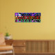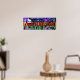 Pour cela, je propose un cadre (et même plusieurs cadres superposés et légèrement transparents) pour créer une composition unique et originale. Ces cadres sont au nombre de 24 pour les 24 heures de la journée humaine.Ces cadres sont de formes géométriques: cercle, carré et octogone. Les cercles se déclinent en dégradé dans les tons de bleu et de pourpre, les carrés dans les tons orangés rouges et les octogones passent du vert au violet.Le choix des couleurs et des formes s'accordent en 3 types de "moment" constituant un jour: soit 8heures de sommeil, 8 heures de travail et 8 heures de "détente", les repas sont comptés dans ce moment détente A cela s'ajoute 7 "Objets" (à la fois des objets que j'ai possédé ou qui étaient chez moi, que j'ai pris en photo et quelquefois des morceaux de mes propres travaux: ici il s'agit d'un série de livres miniatures. Chaque élément (cadre coloré et objets) sont modifiables en taille, ils peuvent être changés de place. Ainsi on peut modifier l'ordre des superpositions de couleur. Avec 31 calques les possibilités deviennent énormes. Ce premier panneau est un panneau test, qui me permettra d'affiner et de modifier mes images. L'idée de départ étant plus complexe et faisant intervenir les fuseaux horaires du lieu des amateurs d'Art potentiels, je n'ai conservé que les cadres. ----- Poster 32"x12" - Available in canvas print.