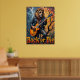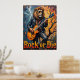This compelling artwork portrays a lion, looking effortlessly cool in sunglasses and a leather jacket, masterfully strumming an electric guitar while seated on the twisted branches of a bare tree. A textured, moody sky provides the backdrop. The thick, expressive impasto creates a tangible texture, making the "Rock or Die" declaration resonate with the raw energy of the performance in a stark environment.