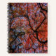 Standard size, spiral bound notebook for home, school, or office that features both front and back covers with the photo image of twisted, gnarly Japanese maple tree branches with red, autumn leaves. Select your notebook style options.