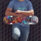 An abstract electric guitar with plenty of other stuff going on, the word "Gnarly" can be edited so you can personalise it to whatever you want. Change the text, font, colour, size and even transfer the whole design to another size deck. Generative content.