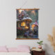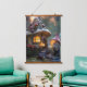 Gnome and a mushroom house, fantasy design hanging tapestry