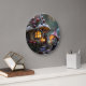 Cute little gnome next to his mushroom house with lights on. Fantasy, whimsical design.