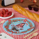 Bring festive charm to your holiday table with this cheerful paper plate featuring a cute gnome in a red checkered hat holding a candy cane. Surrounded by a wreath of pine branches and poinsettias, and accented with a golden "Bon Appétit!" script, this light blue plate adds warmth and whimsy to Christmas dinners, winter parties, and seasonal gatherings. Perfect for family celebrations and cozy meals.