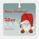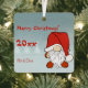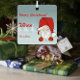 Metal Christmas square ornament featuring gnome with santa hats on a grey background, with a winter tree and snowflake. Includes personalised photo.