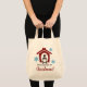 Elements of the cute holiday graphic artwork depicting a gnome standing in the doorway of a small Scandinavian style house with stylised snowflakes on this holiday themed tote bag each are able to have a different colour applied through customisation for a unique look.