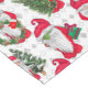 A Fun Holiday Christmas Tablecloth Patterned In Different Gnomes With Gifts, Trees, And Wreaths