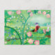 Gnome gardener, Blackbird, Hedgehog & white Rabbit Holiday Postcard