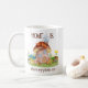 A cute little garden gnome cottage inside a mushroom with a coloful garden of pretty flowers and plants that says, home is where my plants are.