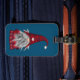 Cute winter grey bearded gnome wearing a plaid outfit with snowflakes and a heart on his cap luggage tag.