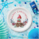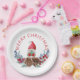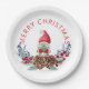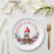 Cute watercolor Christmas gnome on a wreath of pine cones, fir twigs, and mistletoe