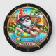 This whimsical wall clock features a cheerful gnome relaxing in a pool. He's floating on an inner tube, holding a beer, and enjoying a sunny day. The clock brings a humourous and leisurely vibe to any room. Perfect for adding a touch of humour and personality to your home.