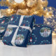 “Gnome sweet gnome.” This wrapping paper features a cute, fun, whimsical gnome in red and dusty blue alternating with your personalised photo, in a repeating pattern and all framed with Scandinavian designed dusty blue, red and orange floral wreaths overlaying a navy blue background. Personalise with the photo of your choice as well as your family name. Feel the warmth and joy of the holiday season whenever you use this fun, simple, modern, custom Christmas wrapping paper. Matching cards, stickers, pillows, home décor, and more are also available. Turns a great present into something even better!