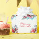 Cute watercolor Christmas gnome with Christmas tree and Christmas gift bag on a wreath of mistletoe and poinsettia