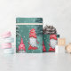 An Adorable Green Wrapping Paper Of Gnomes At Play In Winter.
