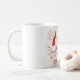 A festive whimsical gnomes Merry Christmas mug for your holiday home decor in red on white with a collection of soft ghosted images of Christmas boughs, pine cones, and pine needles in a round shape. Cuddle up while having hot chocolate by the fire. https://www.zazzle.com/collections/gnomes_merry_christmas_red_white-119651994807957620