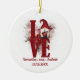A cute red gnome with the word LOVE designed on these Christmas ornaments. Personalise with your names and wedding date.