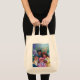 The printing came out very well, better than I had anticipated. The natural color fabric is sturdy with strong seams and comfortable handles. This tote fits easily over my shoulder. As it is filled, the bottom flattens out--very cool! I would buy this product again. This grocery tote holds a lot of groceries! The image quality was very good. The colors were a little darker than I had expected. The darkness may have been due to printing on a natural color fabric rather than on white. The cat design is attractively centered on the tote. The spirit of the design is very lively, just as it appears on the Zazzle website.