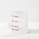 Let the world know you need your coffee. This mug is sure to bring laughs to anyone who sees it. Printed on both sides.