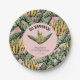 These playful "Go Bananas!" green and yellow personalised paper plates feature hand drawn yellow banana bunches and tropical green banana leaves against a pink background with subtle raindrop detailing in a lighter pink. All text is editable. Personalise with Name, Event and Date.