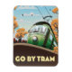 Go By Tram, vintage cartoon travel poster featuring an old vintage Tram.