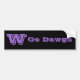 Bumper sticker shown in black/purple with text "Go Dawgs"