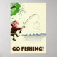 Go fishing , cute cartoon vintage or retro fisherman travel poster.
