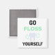 Go Floss Yourself design. This is a short funny quote which is great as an appreciation gift idea for Dentists. Also suitable as Dentist Gifts.