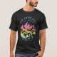 I give wanted to give this a 4 instead of a 5 because these Basic DARK T0shirts run unexpectedly SLIM or Narrow. Which is great if you do not have a potbelly, but I have a paunch. It isn't the shirt's fault that I've got a beer belly. The design and shirt itself is a quality cotton shirt. The color is more of a deep purple, but still a very pretty color. The Basic DARK T-shirts run a bit SLIMMER than the Basic Ts. The neck is a fraction narrower (or seems to be narrower) also. I'm a paunchy middle-aged woman and my neck is 12 inches (31cm) thick and the neckline fell about the same as in the photo of the man, and I had the desire to tug it a bit. So if you're a thick necked man or like loose shirts, be aware these are slimmer shirts. Once I get rid of my lockdown paunch it'll look great. The shirt washed well in cold water with no apparent bleeding. We don't have a dryer, so it hung dry. Did not shrink. Love the colors and the design. The design looks smaller on my shirt than it does on the model on-line. But still, it looks good on the shirt. The printing looks as it does on the model, just the size seems fractionally smaller. Washed garment in cold water, hung dry and design appeared unaffected.