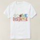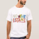 A colourful t-shirt design featuring the phrase "Go the Distance." in multiple, vibrant hues. The text is arranged in a dynamic, eye-catching layout, with each letter outlined in a contrasting shade. The design is bold and energetic, perfect for those who seek inspiration and motivation.
