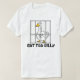 This humourous design shows a goose standing behind bars with a locked gate, blending simple line art with bright yellow accents on its beak and feet. The playful illustration combines animal character charm with a quirky sense of humour, making it a fun and bold cartoon-style artwork that stands out.