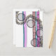 This decorative postcard has a design called - Go with the flow. It is an abstract watercolour and pen design of stripes and circles on a white background. The design is both restful and interesting. There are pink, apricot and blue stripes broken by a doodle style pattern of flowing circles in black and grey. The artwork is original, and only available from The Art of Being Beth.