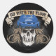 Go with the Flow (Hockey Hair) Blue Classic Round Sticker