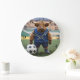 "Goal-Getter: A Highland Cow Dressed for Soccer" Large Clock