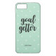 This stylish case features a trendy mint green background with white polka dots, and the phrase "goal getter" in modern typography. Personalise with your name.