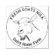 Simple black and white fresh goats milk dairy farm product label with business details. Easy to personalise handwriting modern typography using the template. Minimalist cute goat line drawing unique original artwork by artist Catherine Sweetman