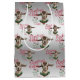 CUSTOMIZE THIS Christmas Gift Bag- Adorable Portrait painting of a Toggenburg baby goat with Christmas greenery, holly and berries, a red bow and mistletoe - with ornate calligraphy text that reads: Christmas Wishes and Baby Goat Kisses all on a removable silver background - remove background to reveal white or choose any colour background you like from the customise colour picker - Perfect for the goat lover in the family - won't they be surprised to see this unique Original Christmas goat on their Christmas package Christmas morning. A ©goatlady GetYerGoat™ original.