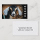 This eye catching business card features a striking photographic portrait of a young pet nubian goat with long ears and a long roman nose, wearing a colour. Shades of black, brown, white and grey. GOATS is spelled out in large outlined lettering. Both sides are fully customisable with your own professional or personal contact information.