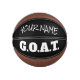 GOAT Greatest Of All Time custom mini basketball. Funny personalised ball for kids and adults. Create one for dad, husband, uncle, brother, grandpa, coworker, colleague, boss, sports coach, best friend, trainer, father, boyfriend, son, grandson etc. Fun sports accessory for guys. Make your own humourous present for Birthday, Father's Day, Christmas etc. Customisable in different colours. Black and white example. Bold and handwritten typography template. Add your own funny quote or saying optionally. Available in small and official regular full size.