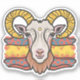 A whimsical and eye-catching goat head sticker with a playful expression. The goat has a pair of prominent horns, and its eyes sparkle with a mischievous gleam. The sticker's background is a soft gradient of blues and purples, accentuating the goat's vibrant colours. This sticker would be perfect for decorating a laptop, notebook, or any surface in need of a bit of whimsy.