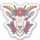 A playful and vibrant goat head sticker, with a mischievous smile and twinkling eyes. The head is adorned with a colourful flower crown, and the overall design exudes a cheerful and whimsical vibe. It is perfect for adding a touch of fun and creativity to any surface, whether it's a laptop, notebook, or even a wall.