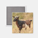 Photo of a brown and white goat standing in a grassy field, showing off his horns.