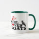 Playful litle pygmy kid Goat Coffee Mug - This girl Loves Goats , the O in Loves is a red heart with 2 stylised goats inside of it.. standing on the S from the word Goats
