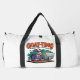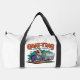 This white duffle bag features a humourous design of a goat in a suit and sunglasses, working at a computer, with "GOAT-TING" above and "THINGS DONE EVENTUALLY" below. This quirky design is perfect for those who appreciate a relaxed approach to productivity. Edit colour of the bag caps and body in the Design tool to your favored colours