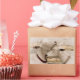 A pair of adorably sweet white farm goats, showing eachother some love and affection! This beautiful soft colour photograph shows livestock in a cute way, capturing a gentle and loving moment between a goat couple in a pen at an agricultural exhibition fair.