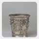 Roman's Goblet embossed with skeletons holding masks, from the Boscoreale Treasure located at the Louvre, Paris, France. The Goblet embossed with skeletons holding masks, from the Boscoreale Treasure was created around the 1st century.