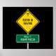 A Road Sign Welcoming you to AMERICA and informing you to be alert for God and Guns. Although America is preset on this design it is customisable to any location - just change it when ordering.